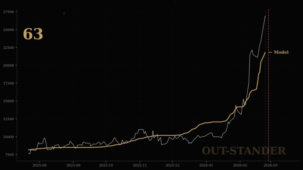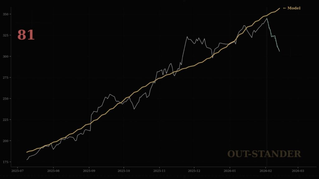 同じように、『OUT-STANDER』は暴落の原因は予測していません。市場構造の状態から「力学の変化(同調的・模倣的な追随行動が加速しているか?)」を評価しています。