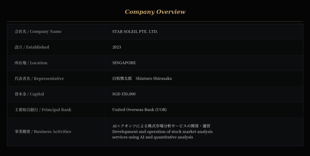 (STAR SOLEIL PTE. LTD. CEO / シンガポール在住)