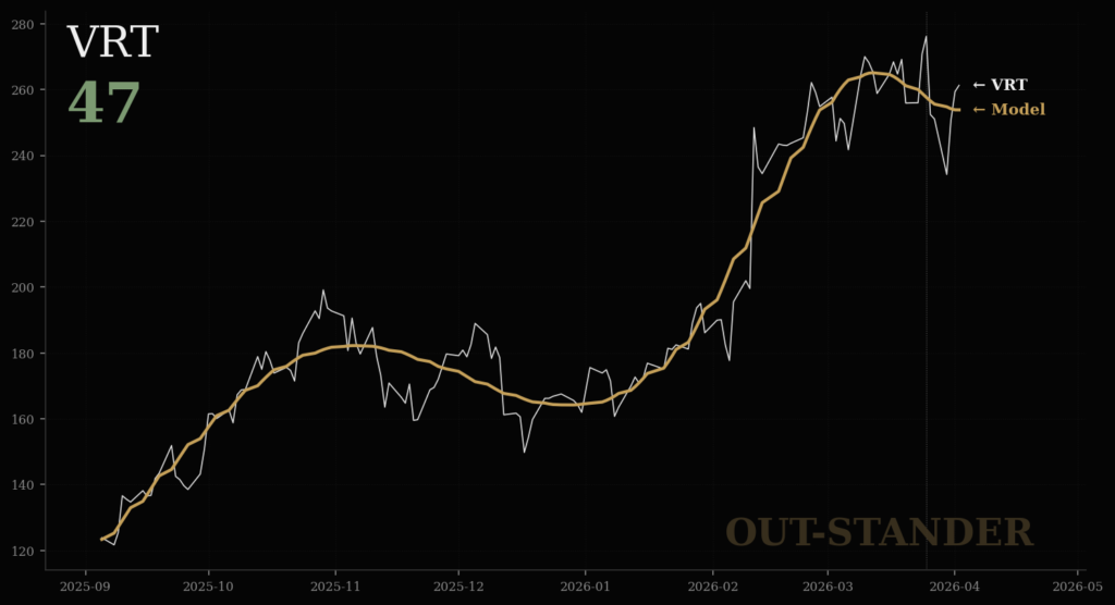 OUT-STANDERは、独自のAIクオンツ分析モデルが市場構造の状態をリアルタイムに評価し、0〜100のスコアとして可視化している分析インフラです。