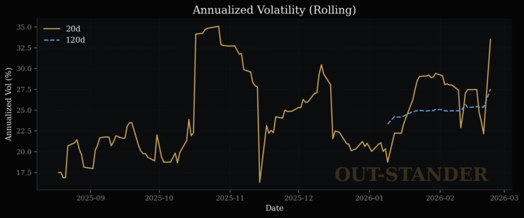 (2月以降で再びボラティリティも大きくなっている。