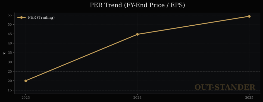 2023年から2025年でのPER上昇における