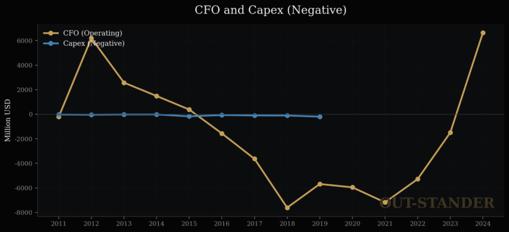 投資案件の大きな売却益が出た時だけプラスであり、