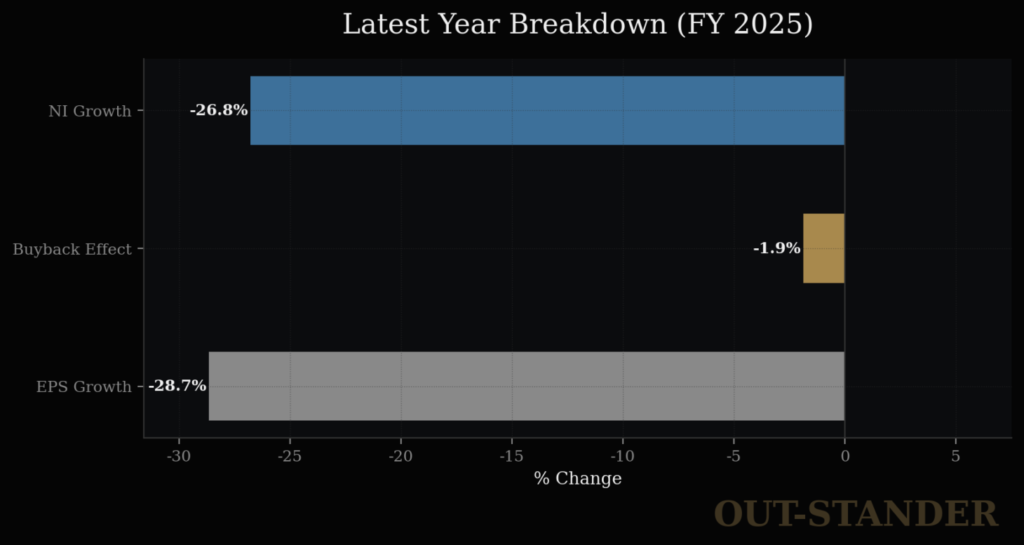 (自社株買い要因もマイナスなのは社員向けで株式報酬を支払っているため。)